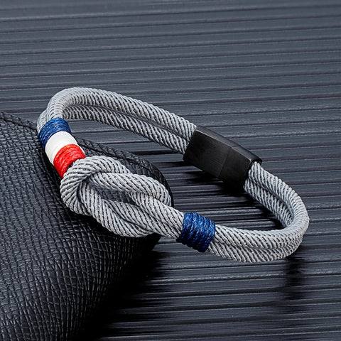 - Bracelet tissé double corde avec drapeau française et symbolique